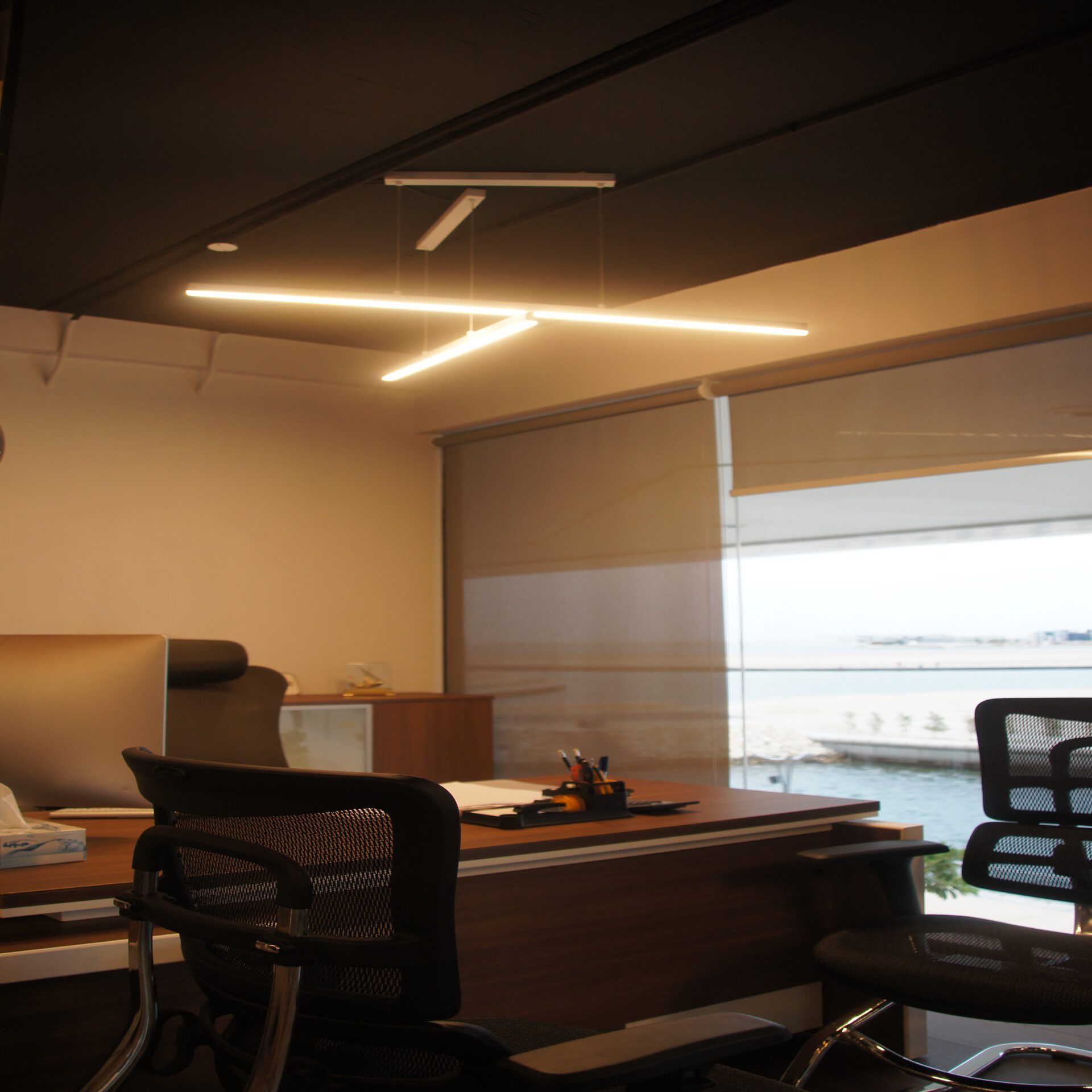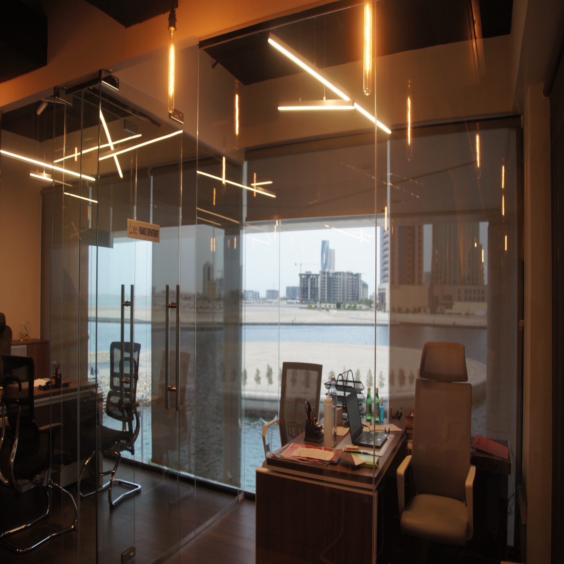 Lighting design for Dose Cafe and offices at The Water Garden in Seef District, Bahrain.