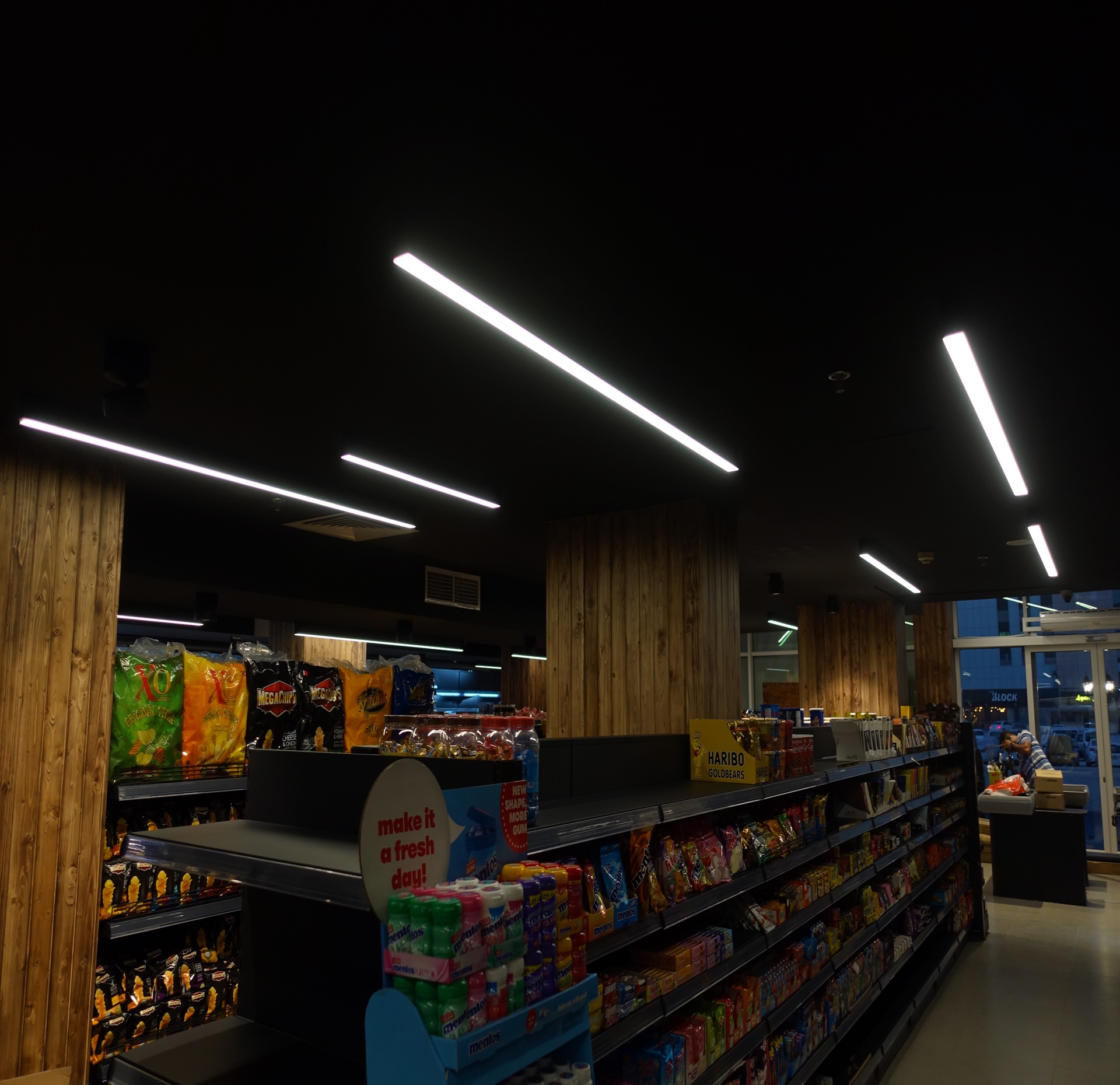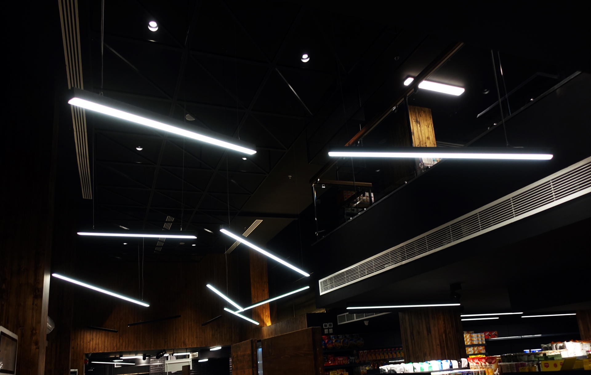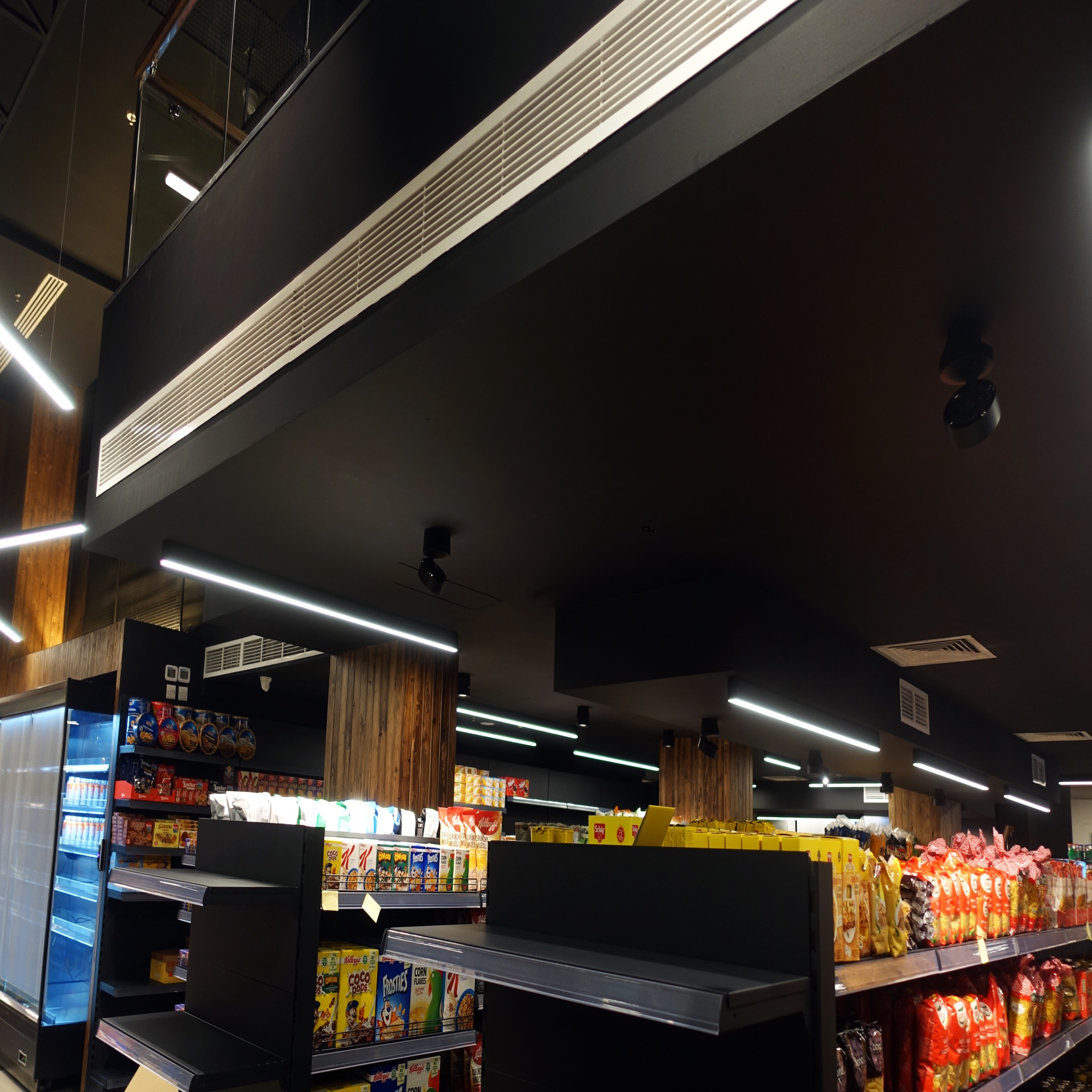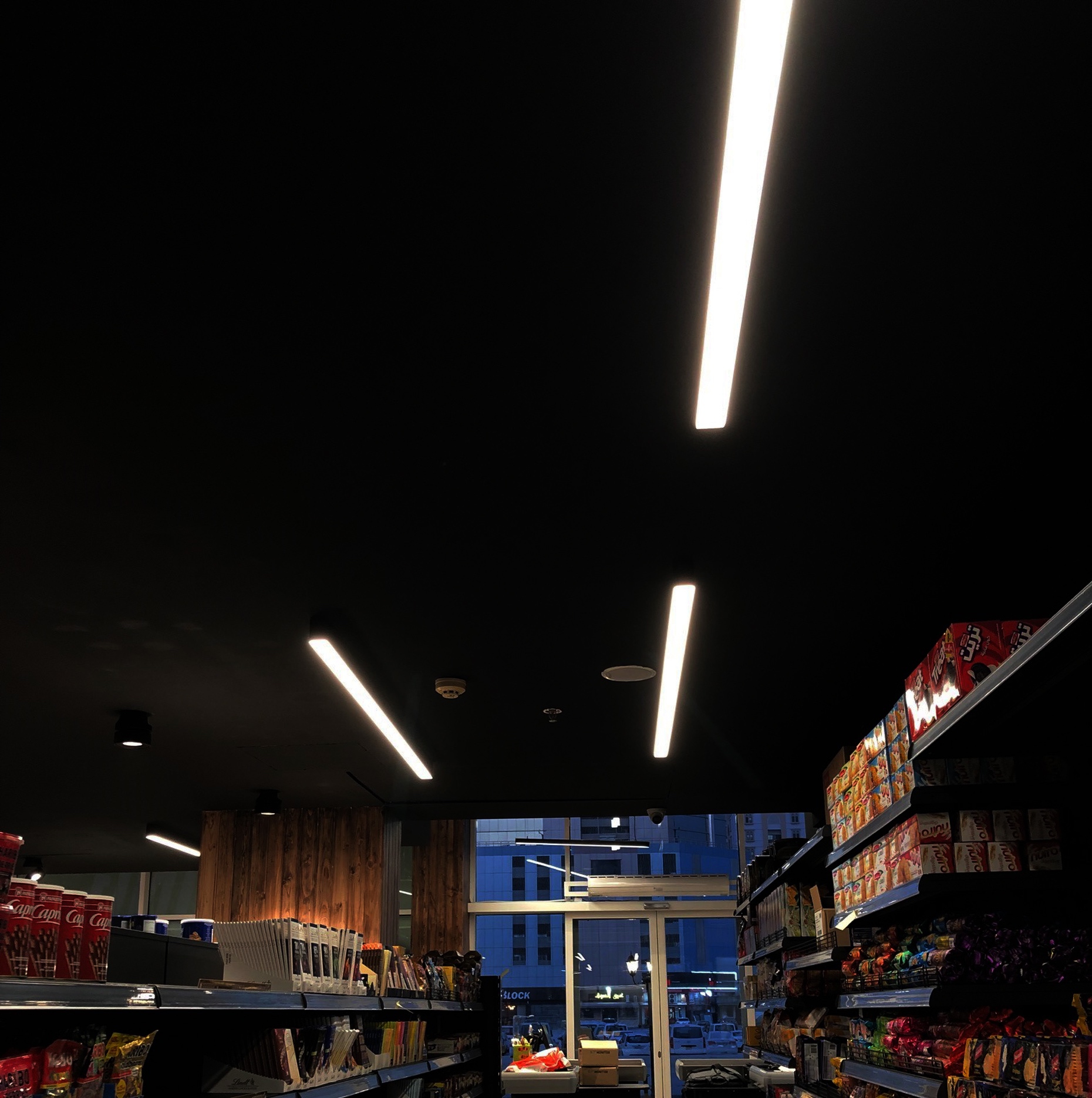 Lighting design and supply for a modern supermarket located in Seef District, Bahrain.